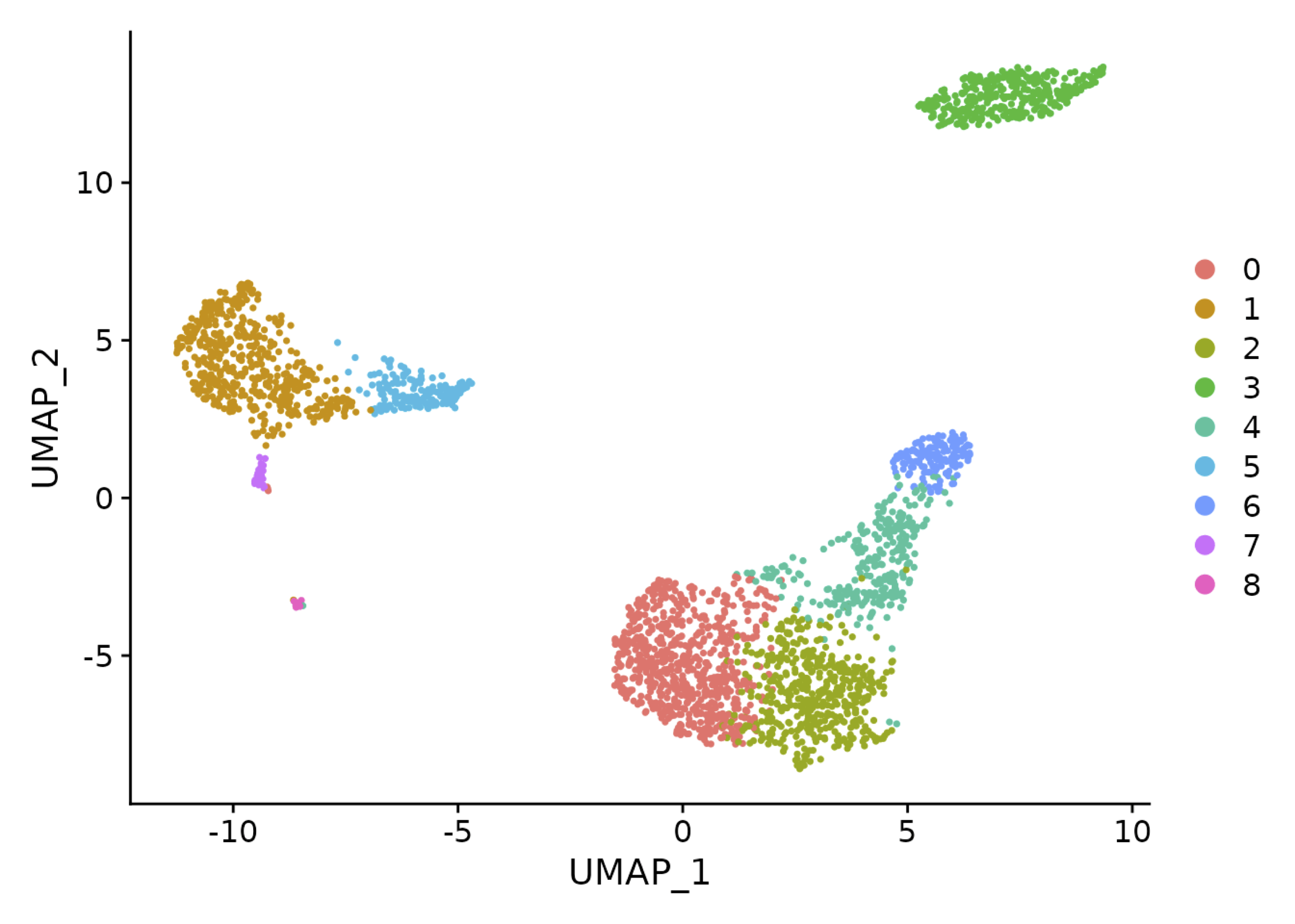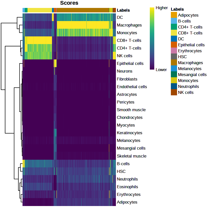 - Clustering: cell type clusters